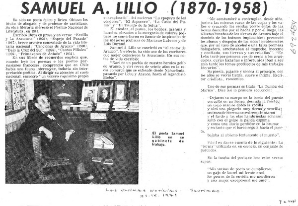 Samuel A. Lillo [artículo] Julio Ramírez Fernández.