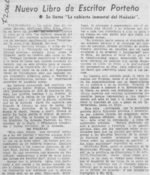 A punto de aparecer nuevo libro del Huáscar. [artículo]