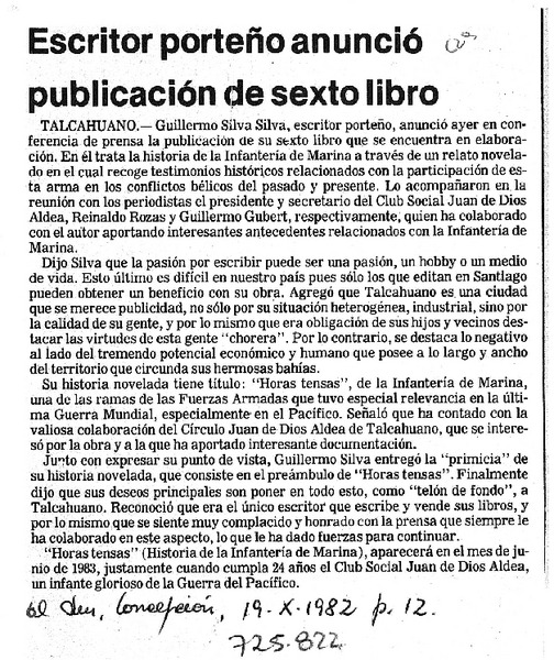 Escritor porteño anunció publicación de sexto libro. [artículo]