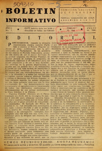 Unidad boletín del Partido Comunista - Comité Local Vallenar.