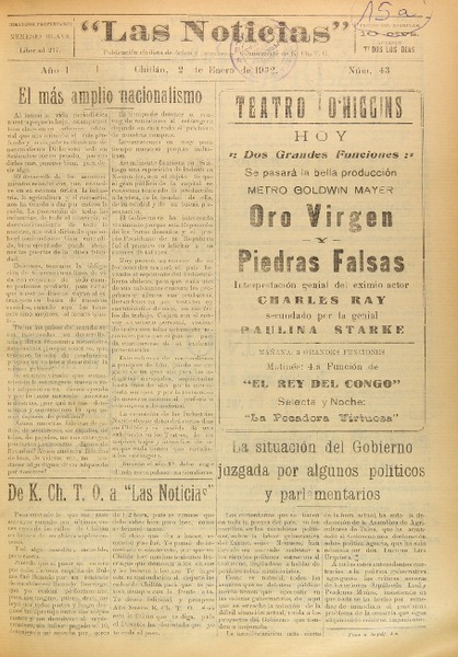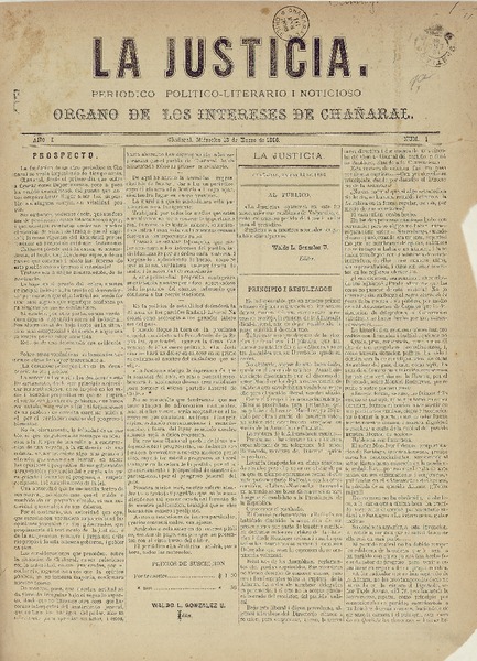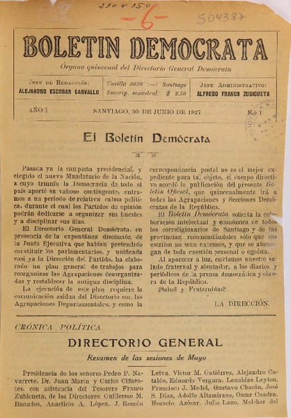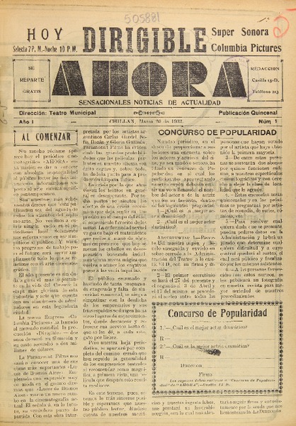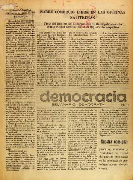 Adelante órgano oficial de la Agrupación Demócrata de Chillán.