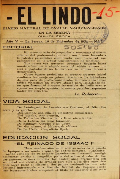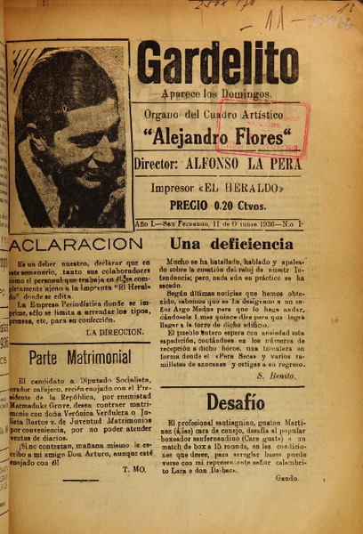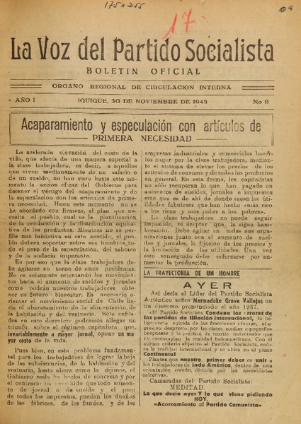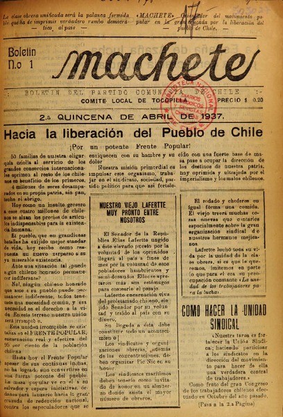 Trinchera roja Organo Oficial del Comité Regional de Ovalle del Partido Socialista.