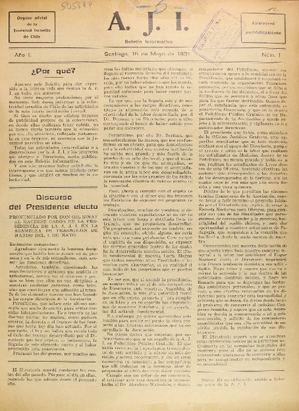 A.J.I. órgano oficial de la Juventud Israelita de Chile.