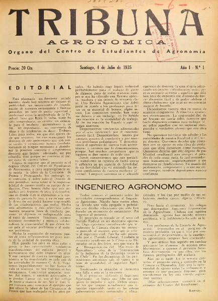 Tribuna agronómica organo del Centro de Estudiantes de Agronomía