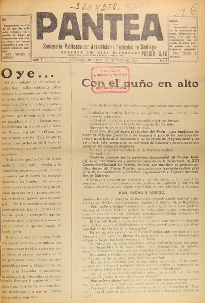 Trinchera Organo oficial de la Juventud Socialista, de la Acción de Mujeres Socialistas y del Partido Socialista.