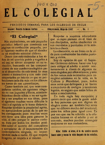 Araucanito Organo de los alumnos de la Escuela Superior No.21.