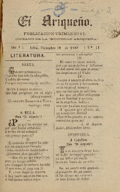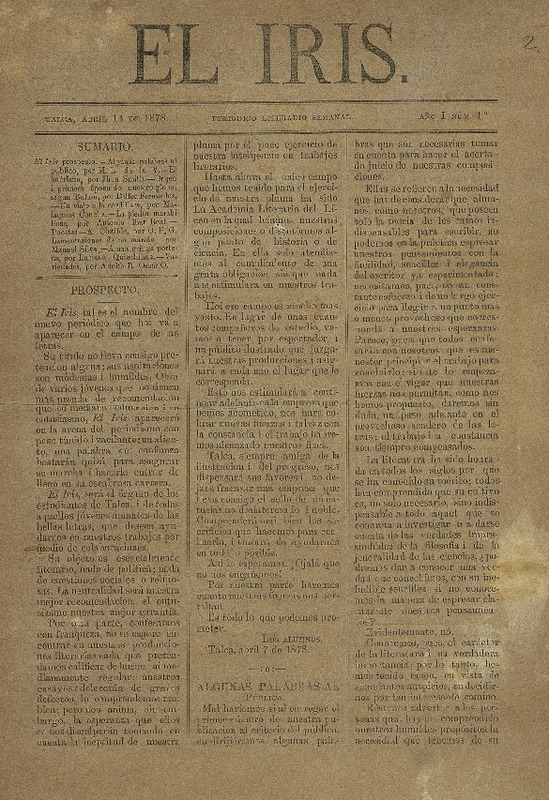 Unión intelectual publicado por los alumnos del Liceo y de la Escuela Normal de Preceptores.