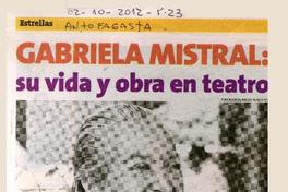 Gabriela Mistral: su vida y obra en teatro. [artículo] La Estrella I (Diario : Antofagasta, Chile)-- oct. 2, 2012, p. 23. .