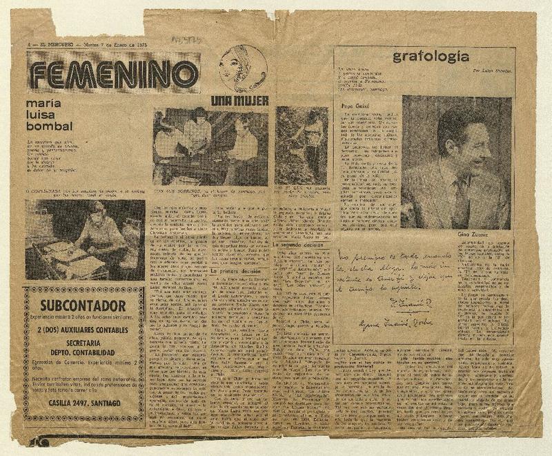 Sección Referencias Críticas. Bombal, María Luisa, 1975