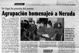 Agrupación homenajeó a Neruda. [artículo] Renacer (Malleco, Chile)-- jul. 16, 2004, p. A6. .