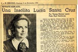Una insólita Lucía Santa Cruz: [entrevista] [artículo] / Teresa Donoso Loero. El Mercurio (Santiago, Chile)-- nov. 9, 1975, p. 2. retr. .