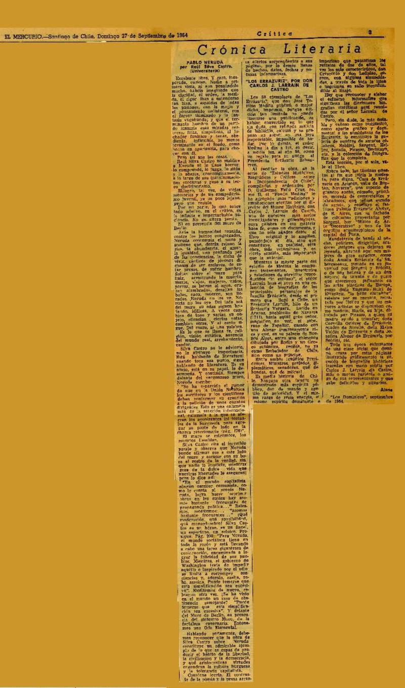 Materias: Autores chilenos - Neruda, Pablo - Silva Castro, Raúl - Larrain, Carlos J. - Pablo Neruda - Errázuriz