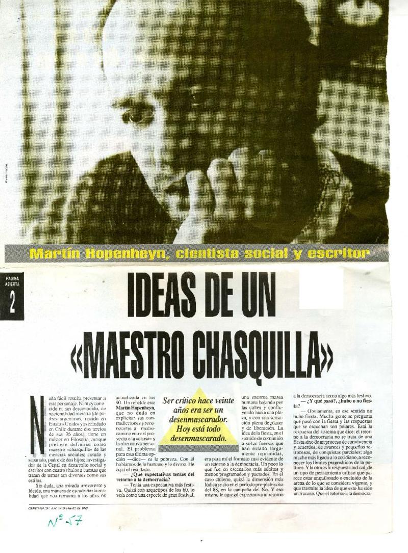 Ideas de un "maestro chasquilla" [artículo] / Jaime Gré. Página Abierta. -- no. 57 (ene. 6, 1992) p. 2-4 retr. .