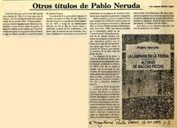 Otros títulos de Pablo Neruda [artículo] Marino Muñoz Lagos.