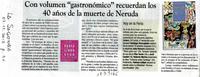 Con volumén "gastronómico" recuerdan los 40 años de la muerte de Neruda. [artículo]
