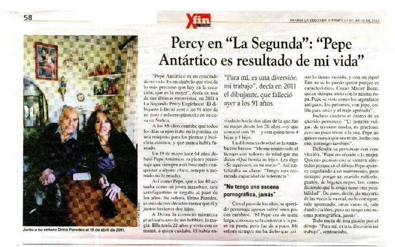 Percy en "La Segunda": "Pepe Antártico es resultado de mi vida" [artículo] / La Segunda (Diario : Santiago, Chile)-- jul. 12, 2013, p. 58 .