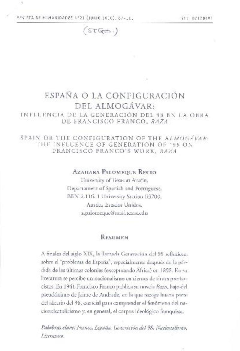 Fuente: Revista de Humanidades (revista : Santiago, Chile)-- no. 21 (jun. 2010) p. 209-213.