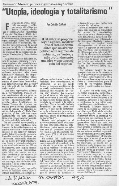 Utopía, ideología y totalitarismo [artículo] Cristián Garay.