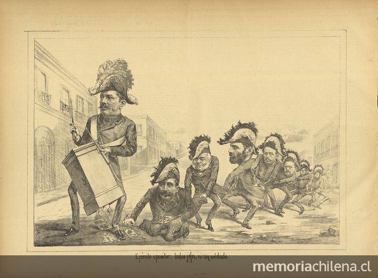 - Ejército opositor: todos jefes, ni un soldado, caricatura, 1890