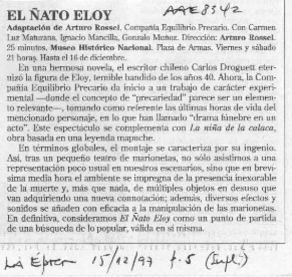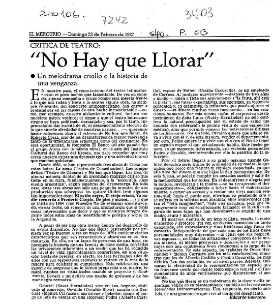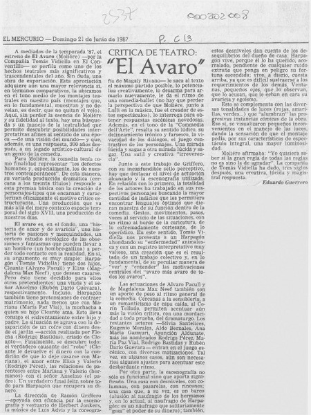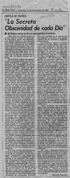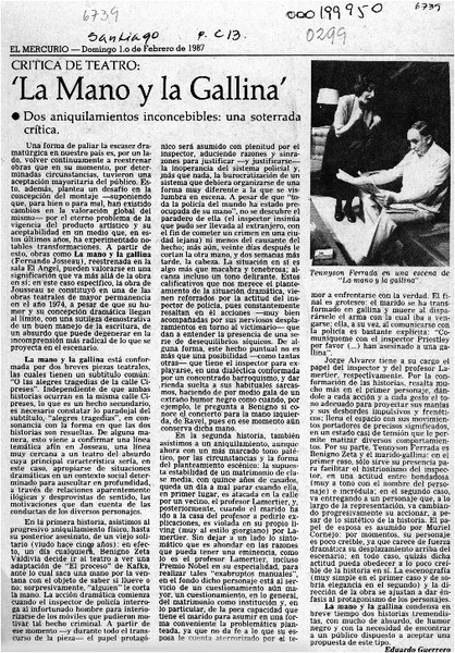 Crítica de teatro, "Qué te pasó, Quintrala?" [artículo] Eduardo Guerrero.