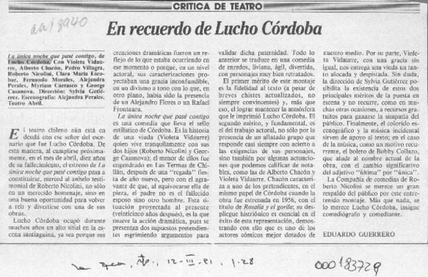 Una actuación recordable [artículo] Eduardo Guerrero.