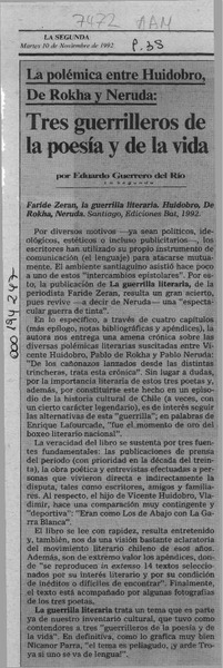 Tres guerrilleros de la poesía y de la vida [artículo] Eduardo Guerrero del Río.