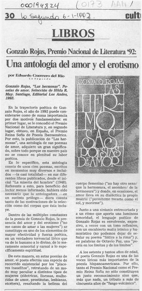 Una antología del amor y el erotismo [artículo] Eduardo Guerrero del Río.