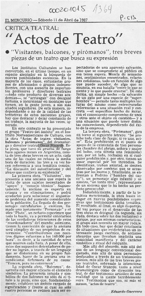 Una fiesta teatral [artículo] Eduardo Guerrero del Río.