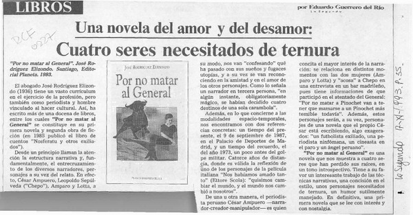 Una novela del amor y del desamor, cuatro seres necesitados de ternura [artículo] Eduardo Guerrero del Río.