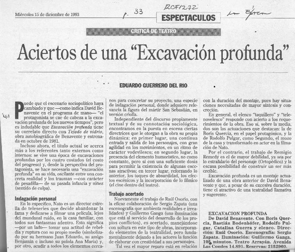 Aciertos de una "Excavación profunda" [artículo] Eduardo Guerrero del Río.
