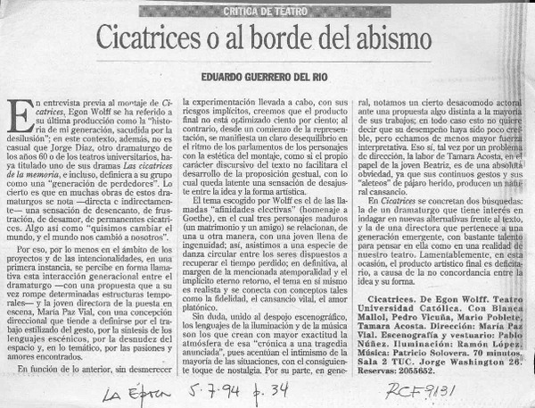 Cicatrices o al borde del abismo [artículo] Eduardo Guerrero del Río.