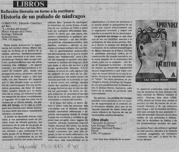 Un lúcido ejercicio novelesco [artículo] Eduardo Guerrero del Río.
