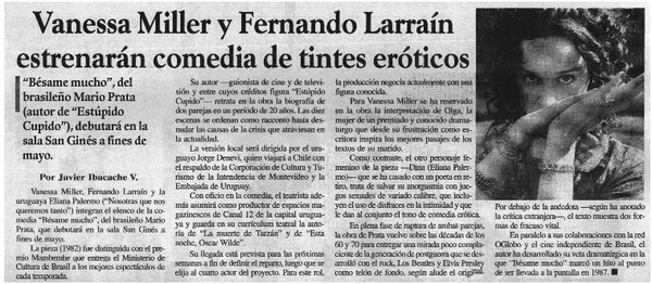 Vanessa Miller y Fernando Larraín estrenarán comedia de tintes eróticos [artículo] Javier Ibacache V.