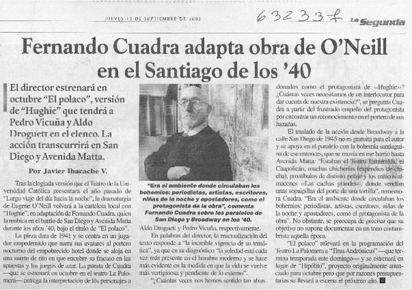 Fernando Cuadra adapta obra de O'Neill en el Santiago de los '40 [artículo] Javier Ibacache V.