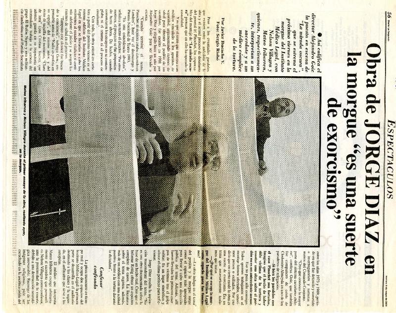Obra de Jorge Díaz en la morgue "es una suerte de exorcismo" [artículo] Javier Ibacache V.