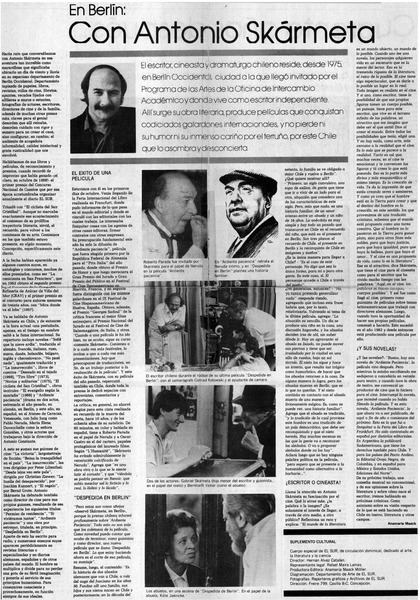 Con Antonio Skármeta en Berlín [artículo] Anamaría Maack.
