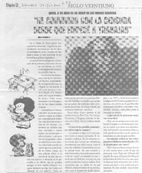 Quino, el papá de Mafalda, sin medias tintas [artículo] Ezequiel Martínez.