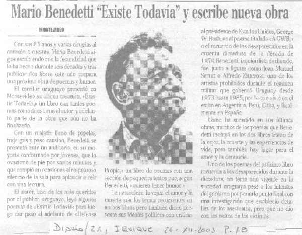 Mario Benedetti "Existe todavía" y escribe nueva obra [artículo].
