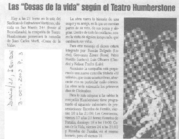 Las "Cosas de la vida" según el Teatro Humberstone [artículo]