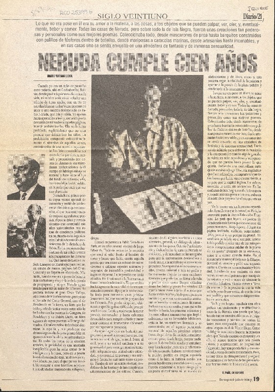 Neruda cumple cien años [artículo] Mario Vargas Llosa