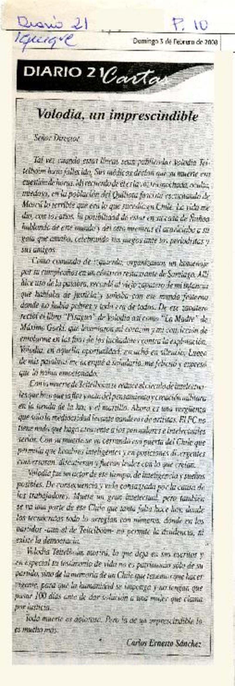 Volodia, un imprescindible [artículo]Carlos Ernesto Sánchez.