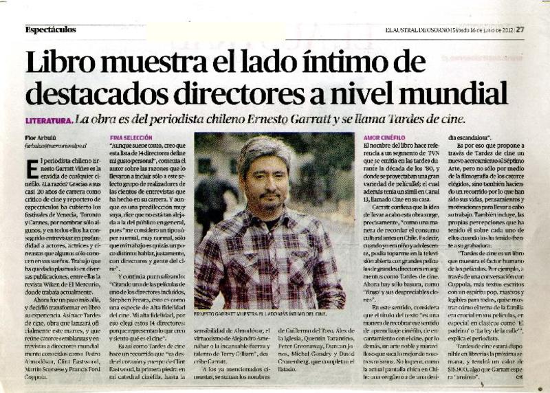 Libro muestra el lado íntimo de destacados directores a nivel mundial [artículo] Flor Arbulú.