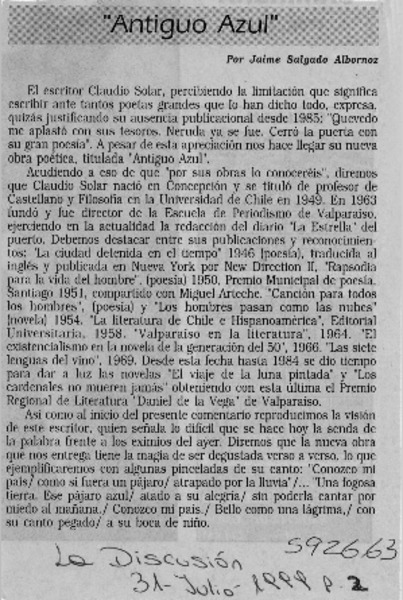 Samuel Jiménez, escritor [artículo] Ramón Riquelme