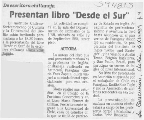 "Un chillanense, escribe" [artículo] Ena Ferrada Ortiz