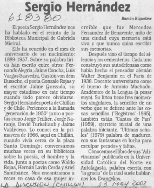 Sergio Hernández [artículo] Ramón Riquelme