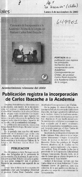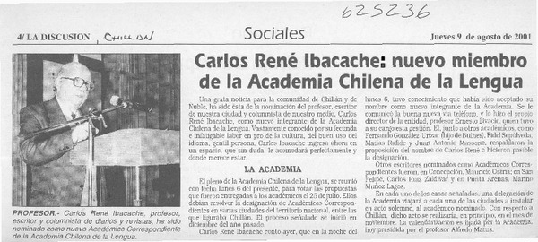Carlos René Ibacache, nuevo miembro de la Academia Chilena de la Lengua [artículo]