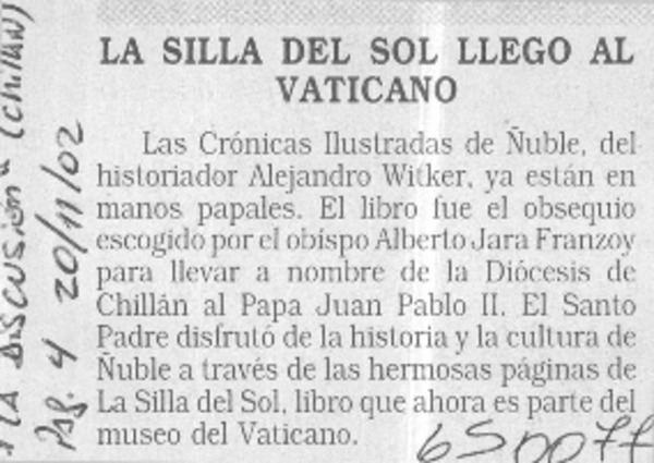 "La silla del sol" promete desenterrar tesoros de Ñuble [artículo]