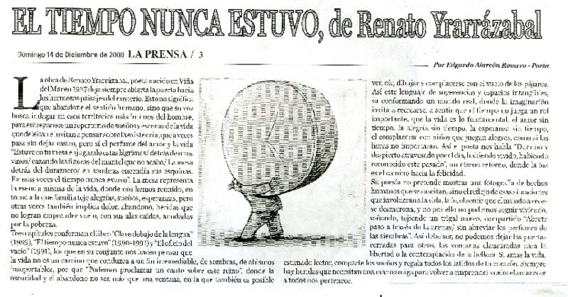 El tiempo nunca estuvo, de Renato Yrarrázabal [artículo] Edgardo Alarcón Romero.