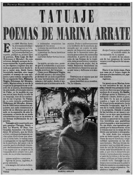 Tatuaje, poemas de Marina Arrate [artículo] Gabriel Alonso.