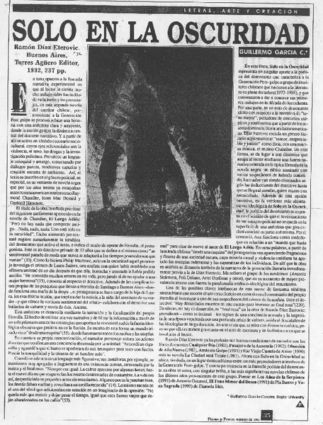 Solo en la oscuridad [artículo] Guillermo García Corales.